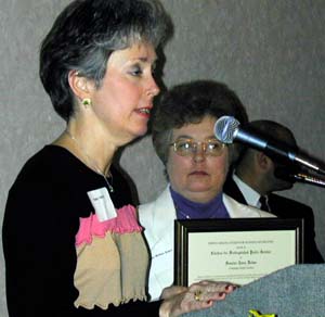 (left) and Jane Knox, daughters of Sen. Jesse Helms, accepted